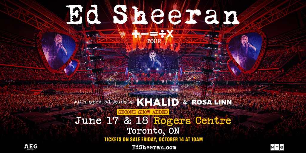Main support on a majority of the dates comes from multi-platinum artist Khalid (May 6th-September 2nd) with rapper/singer-songwriter Russ rounding out the tour (September 9th23rd); Dylan, Cat Burns, Maisie Peters, and Rosa Linn alternate as first of three. Sheeran recently wrapped the UK/European leg of the “+ – = ÷ x Tour,” performing in front of over 3 million people in 6 months and highlighted by a five-night stand at London’s Wembley Stadium. To ensure that his fans have the best chance at getting tickets, Ed Sheeran is partnering with Ticketmaster to use the #VerifiedFan system. Registration opened Monday, October 3rd at 10:00 AM ET and closes on Sunday, October 9th at 10:00 PM ET. Fans can register HERE. The Verified Fan Presale is set to begin on Wednesday, October 12th at 10:00 AM and run through Thursday, October 13th 10:00 PM (all times local).