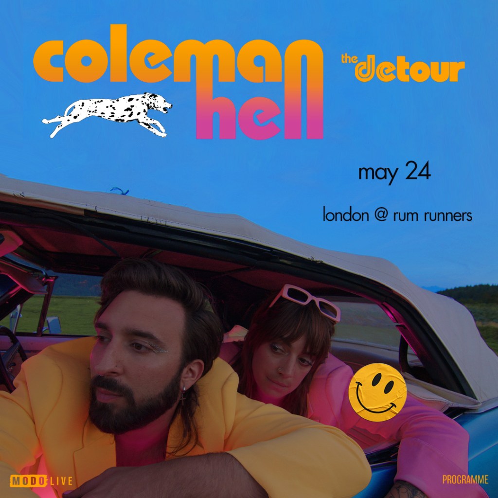 Coleman Hell – The Detour Where Rum Runners, London, Ontario Map When May 24/23 07:00 PM - May 24/23 11:00 PM Age All COLEMAN HELL – THE DETOUR MAY 24, 2023 RUM RUNNERS LONDON, ON PRESALE START: Thursday, March 9, 2023 @ 10:00am ET ALL PRESALES END: Thursday, March 9, 2023 @ 10:00pm ET GENERAL ONSALE: Friday March 10, 2023 @ 10:00am ET