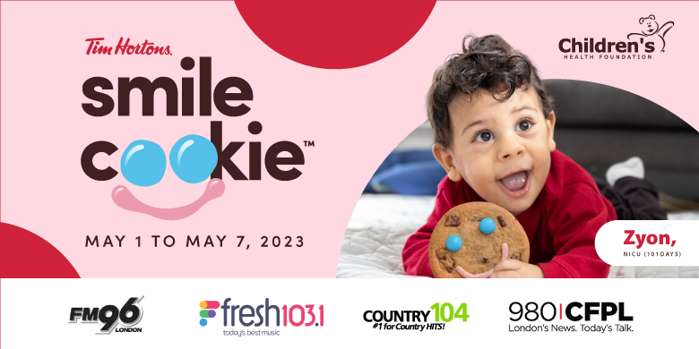 From Monday, May 1 through to Sunday, May 7, there will be many smiling faces thanks to Tim Hortons. Visit a participating London and area Tim Horton’s, and purchase a Smile Cookie for $1.50 (plus taxes) in support of the children and families who rely on Children’s Hospital’s Neonatal Intensive Care Unit (NICU).