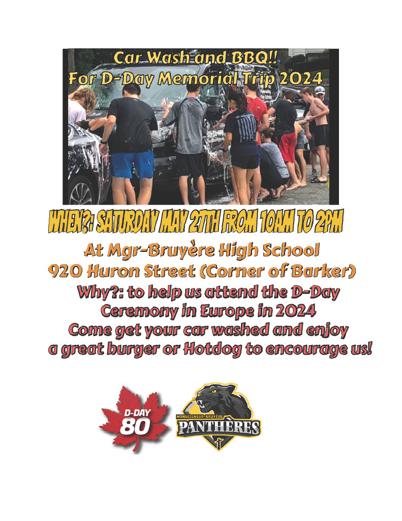 We are hosting a car wash and BBQ at our School, 920 Huron Street, corner of Barker Street, Saturday may 27th from 10am to 2pm. 10$ per car.