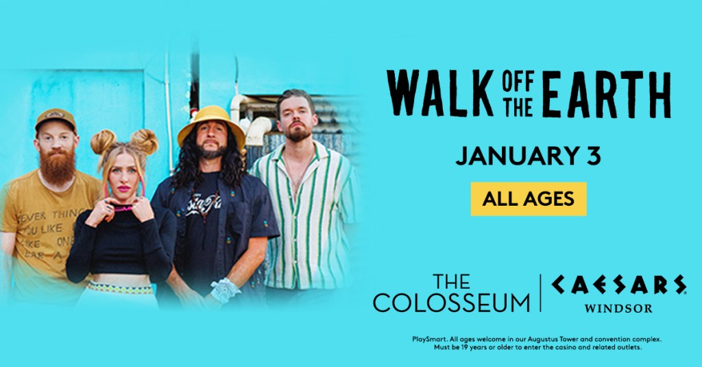 Don’t miss Walk off the Earth on The Colosseum Stage for an ALL AGES performance on Friday, January 3 at 8 PM. Tickets go on sale Friday, October 18 at 10 AM. Ticket purchases can be made through caesarswindsor.com or ticketmaster.ca. The Box Office is open Friday & Saturday from Noon to 8 PM and on Show Days from Noon to 10 PM. For more information, visit caesarswindsor.com and stay tuned for further details.