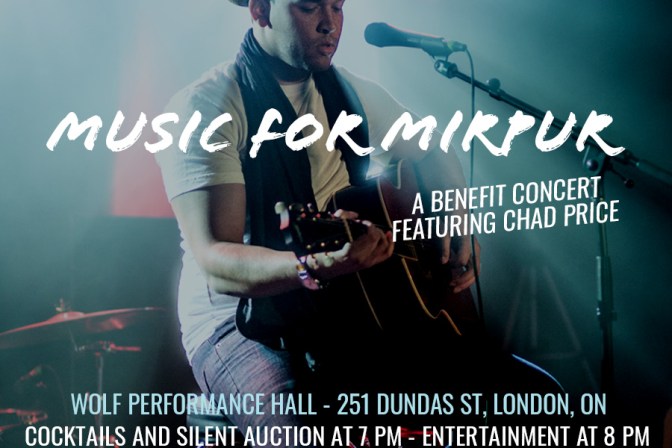 Wolf Performance Hall, 251 Dundas Street, London, ON, Canada Join 103.1 Fresh Radio for Music for Mirpur, a benefit concert featuring Canadian singer-songwriter Chad Price.
